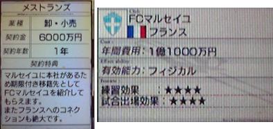 ・更にスポンサー話です。メストランズっていう会社をスポンサー契約を結ぶと「マルセイユ」への期限付き移籍が可能です。今回はかつての留学と違って限界能力が上がらなくなったそうですね。それでも、何かしら自クラブで鍛えるよりかは効果があると信じて送りたいと思います。そろそろ、獲得した新人は必ず留学するぐらいの意気込みで行かないとね。