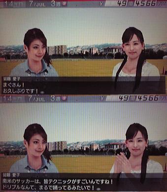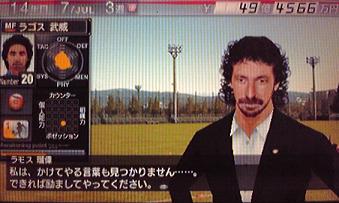 ・・・・で、お前ら何やってんの。ラモスがラゴスを励ませって言ってるよーーー。さ、ここでサカつく初心者に説明。そもそも、ラモス瑠偉っていう名前が使えなかった。だから、架空モデル選手って事でかつての「ファミスタ」の様に名前を文字って登場させた。その時の名残で「ラゴス武威」って名前なんだねぇ。今作では実名OKになったにも関わらず、架空は架空のまま登場してます。「本村和也=木村和司」「倉木隆也=高木琢也」「松本太郎=松木安太郎」な感じです。今作では実名と偽者両方とも出演してるケース多いですね。