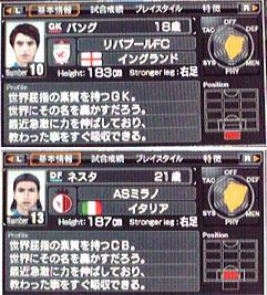 ・サカつくではお馴染みのSSクラスのGK獲得です。サカつく優秀GKベスト10に入りますね。これ以上だとヤロン、ドフぐらいですかね。後はカーンとかブッフォンとかになるんでしょう。モデルはイングランド最高のGKと称される「ゴードン・バンクス」。ストーク・シティに在籍し、初の優勝を飾ったときのメンバー。更にイングランドがW杯を優勝した際のメンバーでもある。うぃきうぃき。ネスタはあのネスタでそのまんまです。サカつく4ではSSクラスの能力があり、CBランキングベスト10に名を連ねた。バウアー、マリウス、クルーマンら架空選手には及ばないが、現役選手の中ではマルディーニと並びトップクラスとなっている。