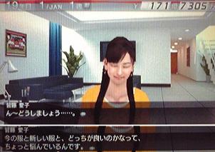 ・んで、愛子ちゃんの悩み。いや~ん、服の好みをまぐに聞いてる訳ですね。そらもう、↑の画像の黄色いのもいいけど、モチベーションアップした時の服であるピンクがいいですなぁ。これでまぐのモチベーションも上がるってなもんよ。そんな訳で服は変更でお願いします・・・・・そういや、かつてのサカつくでは季節ごとに服装が変更出来たよね。確か・・・夏には水着姿で仕事してた気が・・・もう、その機能は無いのか。まぁ、サカつくユーザーがもっとも要らない機能としてアンケートに書いただろーしな。まぐは大賛成なんだがなぁ。