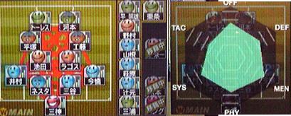 ・萩原、辻元を育てる為に無理矢理スタメンに入れても優勝できる。まぁ、もともと国内SSクラスの逸材なので、試合に出してあげないと勿体無いからね。プレイスタイルレベル3の工藤がスタメン。河本鬼茂がようやっと留学へ。最高の仕上げにしたいですなぁ。20年目にしてとうとうヒデがスタメンから外れてしまった。もう、能力が下がり始めてる・・・やっぱ、旅に出る年齢が早すぎだ。