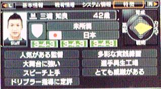 ・選手が留学に行っちゃってるので、控えに甘んじていた平などをスタメンに復活。こういうやりくりしていく事で低迷期を乗り切るのさ。それにしても、早熟だと30歳まで持たなくて、晩成だと40歳以上まで生き残るし・・・むーん、普通型の選手のほうが案外扱いやすいかもね。殿堂入りの選手もわずかに大岩1名だけ。