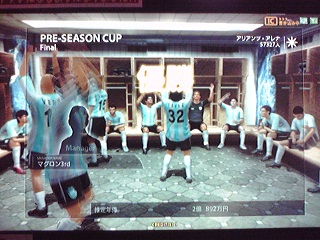 ・ぬおおおおおおおお!!!最終節で勝っていれば優勝で昇格だったのにーーー。3勝3敗1分という酷く残念な結果。しかも、最終節はエトーが珍しくGKと一対一で2度もセーブされるという事態。今まで使ったFWの中ではナンバーワンの決定力と思ってたのに。PA内のシュートをセーブされるとは思わなかった。相手のGKも飛び出してないのになぁ。開幕戦のCPU戦(対戦相手が見つからない事もあるみたい)で7-0の圧勝。このハンデを持ってしてもダメなのかなー。