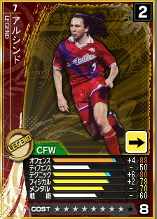 ・はい、前回はレジェンド澤登を引いたので使いたいと書きましたが、第3サイクルに入って一発目でアルシンドを引きました。まぁ、そこから今まででアルシンドは合計で3回も引いてるのでいい加減ウンザリなんですけどね。そこまでしてSEGAは課金させたいのかと。個人的にはLE武田かLE柱谷を引きたいんですけどね。さらにこのアルシンドったら全然ゴール決めてくれないんだよね・・・第3サイクルだけガチャガチャで1200円も使ったけど、あまりLEは優遇されてないのね。一応、検証という意味も込めて第3サイクルだけは起用します。