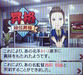 ・えー、10年目を突破したので息抜きなんぞ。まずは「チャレンジモード」というものをプレイしました。用意された敵クラブと戦い、段位を昇格させていくゲームです。段位を上げれば上げるほど報酬も手に入ります。↑の画像の通りに加納と西田監督が手に入ります。まぁ、モデルは加茂さんと西野さんですね。10年経ってからやったので、すでに監督スキルはGET済みでした。