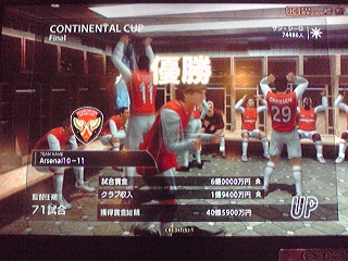 ・セカンドチームのアーセナルがコンチネンタルカップを制覇しました。だけどね、次のコンチネンタルスーパーカップをまたしても落としました。さっきと違いCPUのASローマにPK負け。まぐが何か悪い事をしましたでしょーか。何でこんな仕打ちを受けにゃならんの。ちなみにアーセナルチームはナショナルスーパーカップも落としてるので2度目です。