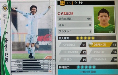・リアルでもWCCFでも大活躍のバウルですよ。ノープレス状態でも前へガツンと行ってしまうのが好きじゃない人にはオススメ出来ませんが、スピードタイプに対してもスライディングを連発してくれるのでかなり重宝しました。テクニックタイプののらりくらりとしたドリブルはたまにファールで一発退場もしちゃいます。CKからのゴールも期待出来るし、風貌もそっくりで言う事無し。土肥同様、今後も起用されるでしょね。