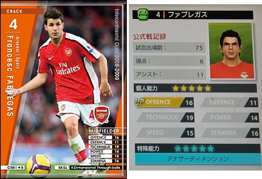 ・練習しないと☆は1個も付かないのが残念なカード。ナスリと同様に縦パスを通すけどスルーパスはそんなに。トップ下配置だとスルーパスもあったかな。本来ならセットプレイなどはロシツキーの方が持ってそうな感じしますね。あと低めの位置からセスクと同様のロングスルーパスも出したので、チーム戦術次第でスルーパスを多用するかもしれん。あ、ナスリより守備はしません。それが問題だ。