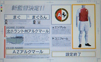 ・へー、知らなかった。チーム名って変更出来たんですね。なので、FCアルクマールっていうチーム名をAZアルクマールに変更しました。やっぱ、正式名称で楽しみたいしね。ってことは、これは「ノースロンドン」を「アーセナル」に変更する事も可能なんですね。いやぁ、早くプレミア行きたいっすわー。