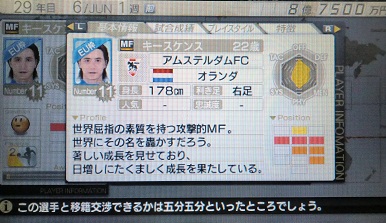 ・うわーーーー、やっぱグラーフ絶対必須だわーー。しかも、調査依頼かけても獲れないチームに居るし・・・。有効度を上げたいけどキャンプしても1度で有効度1目盛り上がるとは限らないし。先ほど、名前をあげた人物「ニースケンス」ですね。サカつくでは架空でキースケンスという名前で登場します。ぐぬぬぬ、両者ともに若い状態で一緒にプレーさせられるチャンスだったのにー。