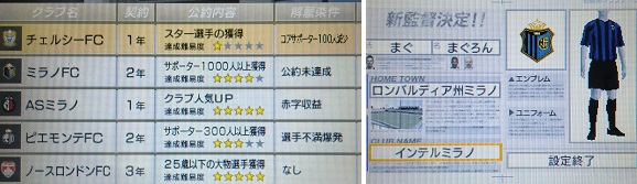 ・さ、次はミラノです。ミラノだけだと分かりにくいので当然改名しますです。チーム名は「インテル」です。理由はスタジアムが大きかった事と、最初から優秀な選手が揃っていたからです。なので、途中からSSクラスをこれでもかと移籍させてあげましたよ。ただ、移籍オファーにインテルがなかなか出てこなくて、何度も5月だけを延々と繰り返すハメに。もはや、今回はこういう意味でリセットしまくってますね。