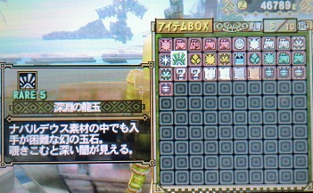 ・へぇー、今回も一発でこんなん出ました。まぁ、その内使う時が来るんでしょう。はい、そんな訳でこれで上位進出ですよ。まずは上位のロアルドロス亜種が最初なんですが、やはり下位の防具では辛いですね。一撃が重いのなんの。そこで上位の防具を先に作る事を優先したいと思います・・・ま、ボーンSですけどね。セクシー装備はまだまだ来年の話になりそーだ。