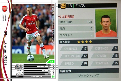 ・控えのSB、控えのボランチ、控えのウィングでもありました。前回、エブエをボランチで起用して大当たりした経験があるので、今回は複数のポジションを任せるつもりでメンバー入り。ほとんどがウォルコットの交代での出場だったのですが、途中から「ウィルシャー」のせいで出番が激減。終盤は2試合に1回は休みを入れるせいで、守備ラインも不調にならずに干してしまいました。リアルでも移籍してしまったので、残念ながらここで御役御免となりました。クロスの精度はサニャより良い印象でしたよ。