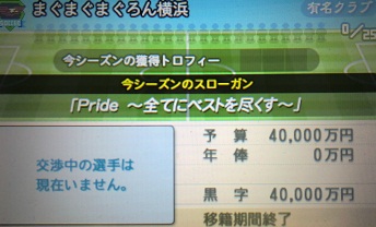 ・「有名クラブ」になりました。年間予算は4億ですよ。ただ、ここらへんになると既存の選手達の年俸が上がりますね。初期メンバーですら微増していきますね。まだ、予算が足りているので解雇するほどではないですが、結構よそのブログとか見てるとカップ戦の賞金を計算せずに解雇してる方もいるみたいです。