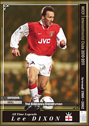 ・何と3クレで「リー・ディクソン」ゲットーっ!! まさかの7クレ以内で獲得とは。アーセナルのフェイマス4の一人なので嬉しいですよ。裏面を見ると「フルバック」って書かれてますね。もはや、死語と化してますが海外のオールドファンは今でも「サイドバック」ではなく「フルバック」って言うそうですよ。「PES(プロエボリューションサッカーの略、ウイイレのこと)」というゲーム内で、日本人が勝手に使っていた「SB(サイドバック)」と表記したら広まったそうです。和製英語なので最初は意味わかんなかったそうですよ。これだけじゃ寂しいので隣の台で14クレ追加。そしたら、マルコ・ファン・バステン出てきたーっ!!・・・ってこないだ引いたばかり。早くもダブり。フリットだよ。フリットで3人揃うんだよ。