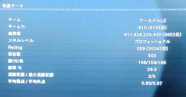 ・ライバルランキングはまたしても低調。ただ、1位の人で勝ち点120程度なので今回は頑張れば上位もいけたんですね。だんだん、経営が厳しくなってきまして、ファン・ペルシーの延長50試合だけで選手獲得ままならない状態です。まだ、新しい選手欲しいんですけどねー。なかなか、うまくいかないもんです。更にオンラインの状態が悪かった日は4試合連続で切断という酷い目に。4試合分のチケット代、全選手の4試合分の契約、更には全選手が4試合をフルで出た扱いなのでスタミナも相当分減った状態になってました。