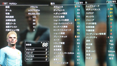 ・総合値は58からのスタートでしたが1年目終了で「66」までレベルアップ。これは普通なんですかね。試合に出てたからってのもあるんですかね。まぁ、ともかくフィジカルに重きを置いて育てております。スーパーサブなんてスキル付いてるんですが、ずーっとスタメンフル出場ですね。