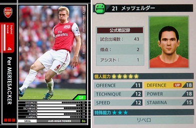 ・仮想メルテザッカーも今期限り。まだ、メルテザッカーを引いてないので続行ではあるが、引き次第に解雇となろう。タイプ的にはどっしりとディレイ出来るCB。プレスを押さないとディレイしてくれるので、ポジショニングは非常に忠実である。スライディングもノーファールで行ってくれるので重宝する。最近ではフンメルスなども登場したおかげで影が薄いが、ドイツ縛りのCBでなら候補の1枚に入れてもいいぐらいに優秀。EX(キャンペーン)なので持ってない場合は仕方ないけど。テクニック系には強いけど、スピードスターには滅法弱いので注意。