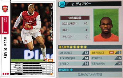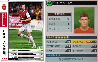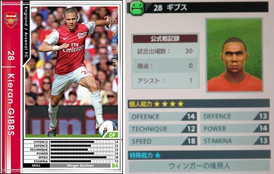 ・過去に3枚ほどカード化されてますが、今回のカードがもっとも能力が高いですね。最初のはスタミナが持たないし、2枚目はボランチじゃないし。今回はど真ん中のボランチでじっくりと戦えるカードになってます。90分持ちます。スタンスが広いせいか、プレス動作が長いので普通に中盤で奪いやすいです。ちょっと遠いかな?ってボールもニョキっと足が伸びて奪います。スライディングはあんましませんが、した時は大抵ファールだったり。一発退場も1度ありました。ボール奪った後もドリブルして奪われる事も多いです。そんな指示出した覚えも無いのにトップ下で陣取る事もあります。「ポストヴィエラ!」って言ってくれますが、まだまだポストヴィエラではないです。