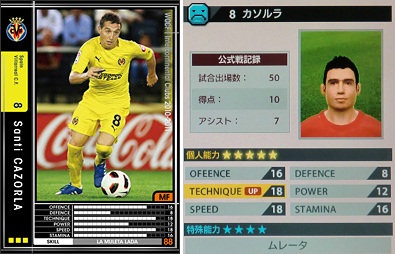 ・途中でCFでもチャレンジしました。やっぱり、適正は右WGです。単純に右で張り付かせてサイド突破でも充分に活躍しますが、サイドからのクロスはグラウンダーが基本。サイドの突破もスピードで横を擦り抜けたいのでテクニックではかわしません。なので、スライディングを完備してるSB、CBには勝てない事もザラ。更にシュートはビックリするほど決定力がないです。PAの線上でシュートをすると大抵はGKセーブです。なので、結構近付きたいんですが、ドリブルのタッチも大きいので近いとキャッチなんですよ。更に今回CFにして初めて気付きましたが空中戦は酷いです。ヘディングシュートは近くてもキャッチされます。緩いヘッドしか飛ばないので、CFはかなり難しいかもです。過去のシーズンでは「キラ」が一番良いです。90分持つし。白カードではふにゃふにゃドリブルを披露してくれる「09-10」が最も使いやすいかも。