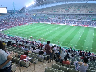 ・はい、天気悪いっす。後日、味スタでは雷で中断したんですが、正直こっちの方が恐かったぐらいですよ。太陽出てないからデジカメも調子が悪くてすいません。ほとんどの写真がボケボケです。あと、ユニフォームは結構アーセナルの方が多いんじゃないかってぐらいでしたよ。まぁ、遠目から見てもお互い真っ赤なのでわかりにくいけど。