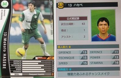 ・控えの選手として登録したつもりでしたが、終盤は稲本にかわって長谷部という交代が多くなりました。稲本と比べるとリンクマンで自分の役割をしっかりと守ってくれるので安定してました。アシストが無いのはFWへ当てる縦パスがほとんど無いからでしょうね。奪ったらすぐに近い選手にパスって感じでした。ヒデへ渡す事がほとんどだったかも。守備に関してはまぁ普通。特段奪いまくった印象は無く、スライディングもした印象は無く、明神よりは大人しかった。今後も起用する予定なので、どのバージョンの長谷部が優秀なのかも調べたいですね。