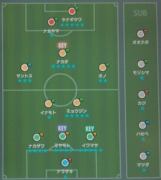 ・両サイドアタッカーでの起用でしたが、何か上手く行きませんでした。セカンドトップが一番良さそうな印象です。サイドでの一対一ドリブル突破は真っ直ぐドリブルな上に遅い。フェイクも何もしません。クロスの精度どころか、ほとんどクロスをあげるところまで行かなかった。小野もアレックスもスタミナがやばいので交代要員としては重宝しました。日本代表縛りとしてはMF登録やセカンドトップ系の選手はかなりいるので、よっぽど好みでの投入になりそうですね。あんまり起用してないけど、それなら大久保の方が良かったし。
