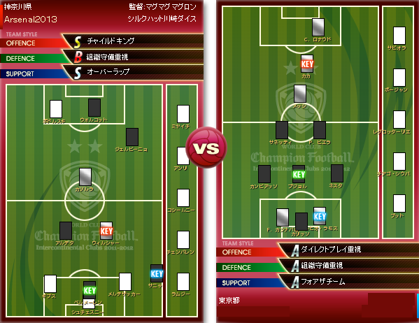 ・残り3試合とお伝えしたArsenal2013が見事に推薦で参加出来ましたーっ!! 東京/神奈川の枠が1つ増えていると参加出来るんですよね。まぁ、まぐみたいな普通のシステムで挑んでいる輩が多いと、この枠を得られる可能性が減る訳ですけど。それでも、構わずに普通に遊びたいと思います。今回はほぼ3バックで挑み、サニャはオーバーラップに専念する右サイド偏重攻撃で挑みました。さてさて、結果はどうなったでしょーか。