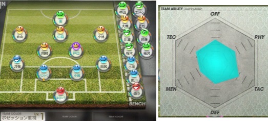 ・今シーズンはほぼ同じ人選で戦いました。小岩、中山など将来的には確実に成長が上回る選手達はカップ戦全試合、アウェーでは後半から交代などで、ホームでは2点差付いてから登場させて出場機会を稼ぎました。来年あたりはレギュラーで強引に使ってもいいかもしんない。まだ、六角形はレギュラーに敵わないんですけどね。GK畑中はカップ戦のみ全試合。さすがにGKは途中交代させる脳内変換出来なかったので。菜入が天狗になった時はレギュラーにさせましたけど。