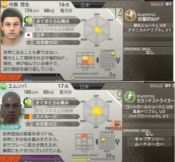 ・こういう時に限ってユースやら探索やらの調子がよかったりするんだよね。中酉啓生=中西哲生ですね。エムンバはエムボマ。いずれも名古屋やG大阪へ返してあげました。他に架空ではDMFの佐々木伸彦。まぁ、日本代表クラスのDMFレベルですかね。何か突出してないので平均的に全部高いってやつです。同じくOMFの多古も小野や前園らと同等の実力者。いずれも普通型なのでユースでの登場なら獲得も有りですね。