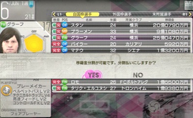 ・クラブ予算を上げるために送り込んだ選手達がいますねー。彼らは契約する為にいるのではないので契約しなくてもいいです。ただ、彼らはすぐにでも移籍のオファーが舞い込みます。なので、1年契約であるならばあえて獲得して様子を見るのもOKです。年俸は返って来ますし、30億の年俸なら100億近い金額でオファーがくるかもしれないし。今回のゲームではルシオしか1年契約出来ませんでした。ちなみにそれでも年内オファー来なくて、もう1年契約して合計で年俸は10億でした。最終的には移籍金37億で売れたので契約するのも有りですよ。