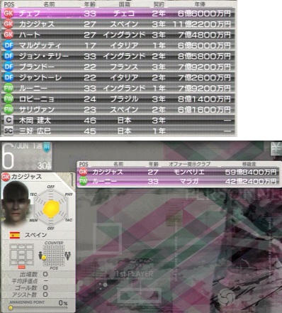 ・いつもと同じメンバーですが、中には未所属欄に優秀な選手が居たので何人かはキープしておきます。来年には期限付き移籍もしたいので、その場しのぎの人選です。次の移籍先には起用しないつもりです。「世界屈指」クラスは次の移籍先へ送り込んで、クラブ予算の足しにする用にも使えますしね。