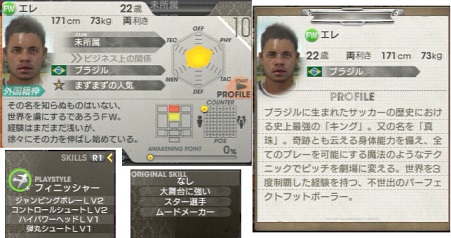 ・そして、また新たな選手発見ですよ。もう、獲得出来ないのにー。出てきたのは何と「エレ」ですよ。「ザ・キング!」だとか「パーフェクトフットボーラー」だとか色々と形容されてますが、サッカー知らない人でも「ペレ」という名前だけは知っている。かつてのサカつくでは「ナシメント」と本名で登場しましたが、J2のどっかのチームが本当に「ナシメント」って名前の選手獲っちゃって以降は「エレ」になりました。年齢が高いんだけど、どうしよっかなー。ひとまずは凍らせておきます。