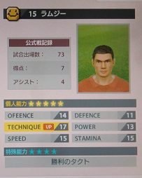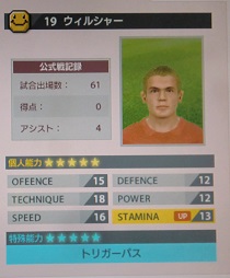 ・前へのプレスは超早いけど、1度だけで後は歩く。タイミング次第で取り捲るけど、悪いと全部ドリブルで抜かれる。なので、ボランチよりかはトップ下起用が向いてるカードでした。ただ、動きまくる割にスタミナが少なくされちゃって。何か残念なカードです。まぁ、このシーズンはケガで棒に振ってるので、この程度でもいいっちゃいいのかも。抜けやしないのにドリブルで突っ込む事が多かったので、ゴールもアシストもあまり付かなかった。