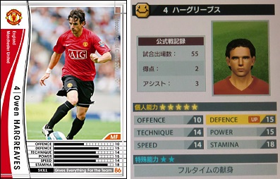 ・白カードでのギグス。ただ、優良白カードという訳でないですね。かつての「天使の左」の劣化版なので、スピード突破はほとんど無いです。サイドで一対一を勝負させても、まぁ勝てない。勝った時のクロスの精度はLEにも遜色無いほどの良質なクロスが飛びますが、当たられたらフラつくし、シュートもGKに防がれやすいです。このカードの最大の特徴は「LEギグス」といずれ交換する場合に起用するのが相応しいですね。戦術が自然に☆3(4だったかも)になってくれるので、レア戦術などで起用する場合は必要ですね。