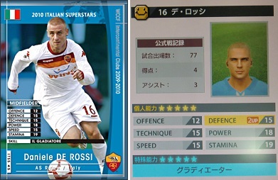・このチームで一番の貢献でしたよ。ガツガツ奪いに行く姿勢は若い頃のカードをお使いください。このデ・ロッシはアンカータイプですかね。ディレイする感じではありますが、守備範囲が広いのでピルロのカバーも出来ちゃいます。メッシやロナウドクラスに抜かれても2度追いかけるぐらいの気持ちを見せてくれますよ。センターラインで奪ってそのままゴールというシーンが何度かありましたが、プレスボタン押しっ放しにしてると結構前へ奪いに行っちゃいます。ただ、問題があるのが、過去に優良白カードとして排出されてるのでキラを使うべきかどうかってところですね。どっちみちイタリア縛りでならデ・ロッシそのものは外せないですね。今でも白デロッシ、白ペロッタのセット見ますもん。