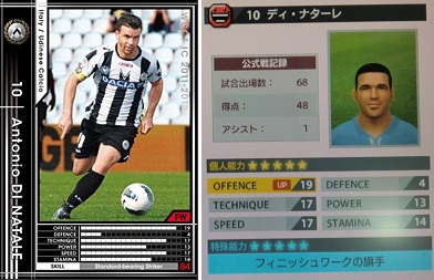 ・結局、交代したディ・ナターレが一番活躍してくれたよ。何よりもゴールに直結する動き出しで、トラップでCBをかわしてGKと一対一が多かったです。バイタルで貰っても1人でドリブル突破をし、2~3人かわしてゴールも余裕。サイドからのクロスに合わせるのも抜群で、このチームの戦術を理解してくれました。シュートはグラウンダーで流し込む感じ。威力こそは無いですが、PA内なら確実に決めてくれる決定力がありました。スタミナも90分持つので、気付いたらずっと使ってた事も。彼が居なかったら大変な事になってましたよ。黒カードで起用しましたが02-03の白カードが優良白らしいので、そっちの使用感ばっかヒットしますね。
