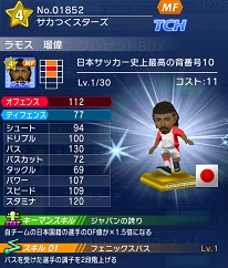 ・そういや、しれっとプレゼントボックスにラモス瑠偉が入ってました。バージョンアップ版に参加した方はもれなく貰えるというものですが、こんだけ☆4だらけになった現状ではそんなに欲しくも無いっていう・・・。あと、ミッションをこなすとレジェンド系の選手を貰えたりもするので、現在はそっちよりあのレジェンドの方が嬉しかったり。