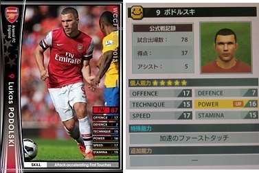 ・バージョン変わってもポルディの左足は悪魔です。PA外でもキャノン決まります。まぐは動画でわざと外から蹴らせてました。それぐらい強烈。過去にも居たけどフッキとかチャールトンより若干劣るぐらいのもの。ドイツ縛りする人は多いと思うけど、左MFでポルディ使うんだったらゲッツェでいい。ポルディはやっぱりキャノンシュートなので、2トップの左で是非お願いします。シュート以外ではドリブルは真っ直ぐですね。フェイクもテクもなーんもしないでただ真っ直ぐ。なので、対面に入られると奪われますが、真横や後ろには強い方です。動き出しを積極的にする方ではないので、じっと前で我慢してますよ。WCCF的にはそっちの方が良かったり。