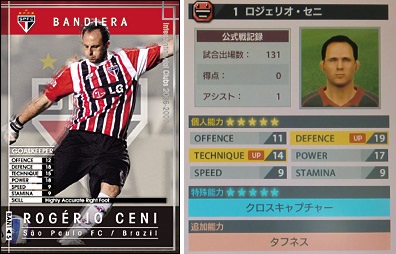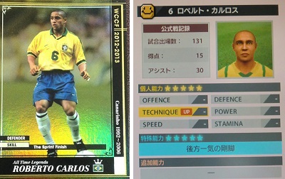 ・個人的には大満足な出来でした。何より、超攻撃的なオーバーラップが嬉しかったですね。時には自分でゴールへ行けちゃうほどのスピードでした。更にロマーリオの頭より足元へのクロスなのでボレーで行けちゃうのでゴールも多かったですよ。そして、ぐんにゃりアウトサイドキックで蹴るFKも何度も観れました。あれを観たいがためにセニのFKを止めたのですから。守備もオーバーラップの戻りで奪う事もあったりと守備も積極的でした。まぁ、普段はそこに居ないので対人戦でバレるとみんなサイドにベタって貼られてましたけど。個人的には特殊実況が「悪魔の左足」じゃなくなってるのが嫌かなー。前のカードじゃないとダメだね。