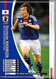 ・今回は日本代表チームを新しくしたので、そのメンバー紹介といきましょかね。一応、本大会のメンバー構成となってるのですが、FWワントップが本田という事で驚きをもって迎えられました。ただ、このWCCFのカードがレア戦術「アンビシャス」になるので使ってみたいなと。元はフリーロールなんですが、ポジション表記がMFなんでね。思った通りFW的な動きをしてくれるかが心配。更に一人だけモスクワユニってのも問題かな。