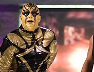 *ところがところが、先週になって対戦カードが変更。なんと、ストーン・コールドが自宅でギックリ腰?なのか何か分からないけど負傷してしまったそうで、急遽試合が変更。ビンスが同じアナウンサー同士で戦え!とスマックダウンNo1アナウンサー(自称)のフナキと対戦させる。しかし、ジョナサン・コーチマンは用心棒に一度解雇されていたゴールダストを呼び戻していたのだ。これでフナキを圧倒。ビンスも仕方ないスマックダウンから誰か探してくるよと帰ろうとすると、スマックダウンの世界ヘビー級王座バティスタが登場。暴れまくるが用心棒は1人だけじゃなく、ビッグバンベイダーが後ろから遅いバティスタはぼこぼこに。勝っても負けても何も無さそうです。試合形式は「討論マッチ」「アーム・レスリングマッチ(腕相撲)」「ストリート・ファイトマッチ」のどれかを選ぶ・・・当然、ストリートファイトでしょ。