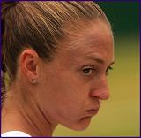 ・189cmの長身で2階から振り下ろすサーブが魅力のダベンポート。まさに女王に相応しい貫禄を持っている。シャラポワなんてまだまだ小娘ってところだろう。前回苦手のキム・クライシュテルスを倒しての準々決勝進出。第1セットはお互いサーブを取り合っての6-6でタイブレーク。昨日のシャラポワもそうだったけど、さすが準々決勝まで行くとお互いブレークはさせませんね。最後は力で押し切ったダベンポートが7-6で先取。