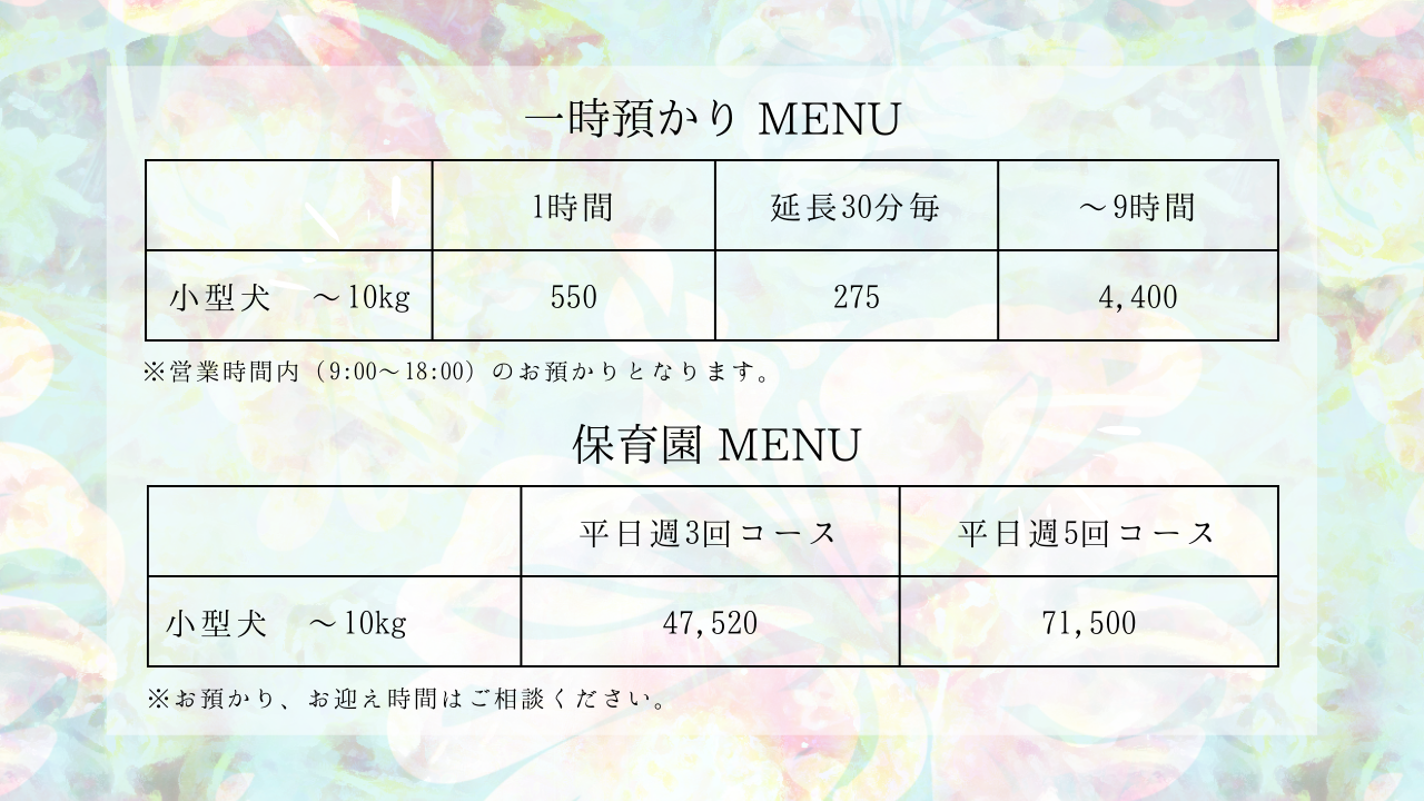 【わんこ保育園・トリミング・一時預かり】
