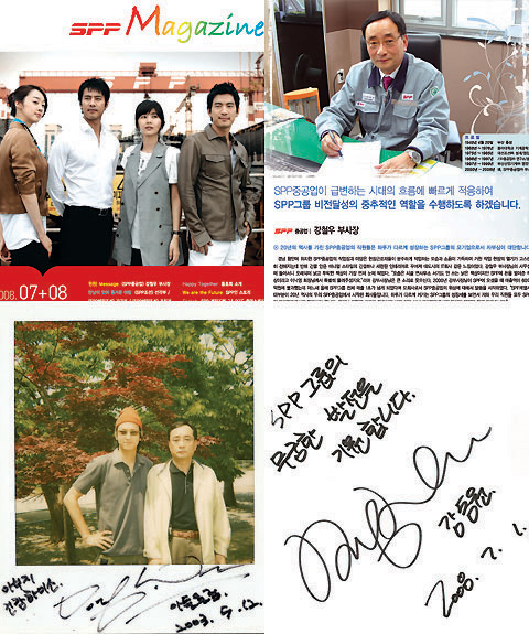 - MBC『私の女』が表紙で紹介されているSPPグループ社報カン・ドンウォンの父、カン・チョルウSPP重工業副社長のインタビュー記事カン・ドンウォンとカン副社長が一緒に撮った写真とサイン