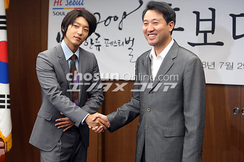 イ・ジュンギは29日午前11時、ソウル市庁西小門別館で「2008ソウル韓流フェスティバル」広報大使に任命され、記者会見を行った。