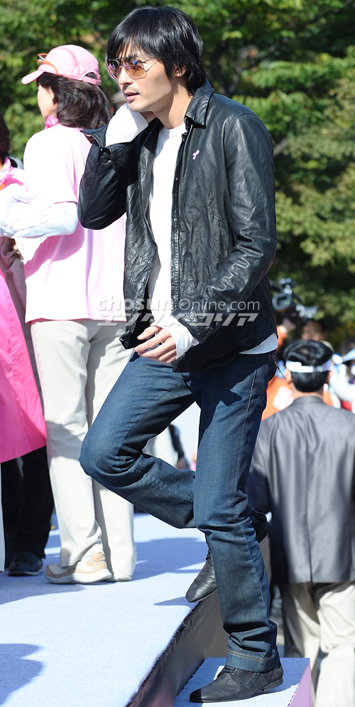 写真は久しぶりに姿を見せたチャン・ドンゴン。化粧品メーカー「アモーレ太平洋」のイメージキャラクターとして、寄付金を手渡した。