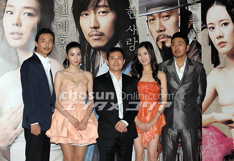 4日午後2時、竜山CGV(ソウル市竜山区)で行われた映画『美人図』のVIP試写会及び記者懇談会か行われた。写真はフォトタイムに臨むキム・ナムギル、キム・ミンソン、チョン・ユンス監督、チュ・ジャヒョン、キム・ヨンホ(左から)。