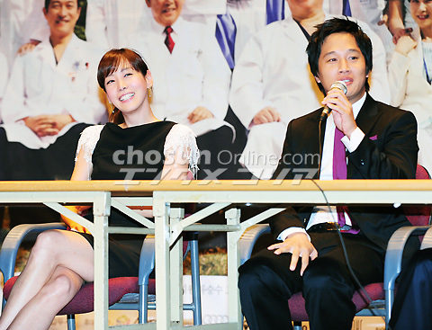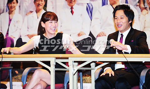 12日午後2時にソウル瑞草区盤浦洞の江南聖母病院で開かれたMBC水木ミニシリーズ「総合病院2」の制作発表会で、チャ・テヒョンのジョークに爆笑するキム・ジョンウン。