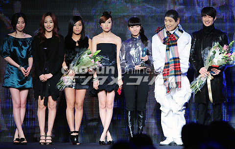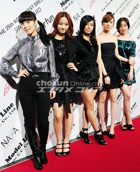 9日午後6時、グランド・ハイアット・ソウルホテル(ソウル市竜山区漢南2洞)のグランドボールルームで「第25回コリア・ベストドレッサー白鳥賞」授賞式が行われた。写真は歌手部門で同賞を受賞したワンダーガールズとソン・ホヨン。プレゼンターのファッション・デザイナー、アンドレ・キムと一緒にポーズを取っている。